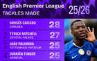 本賽季英超搶斷榜前10:凱塞多第1,帕利尼亞、廷貝爾并列第3